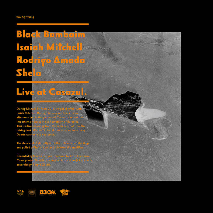 During Milhões de Festa 2014, Black Bombaim got together with Isaiah Mitchell, Rodrigo Amado and Shela for an afternoon jam in the gardens of Casazul, a recent but important art space in their hometown Barcelos. This is a live recording from the audience, not from the mixing desk. The release wasn’t planned, but we were lucky Duarte Ferreira was there to capture it.